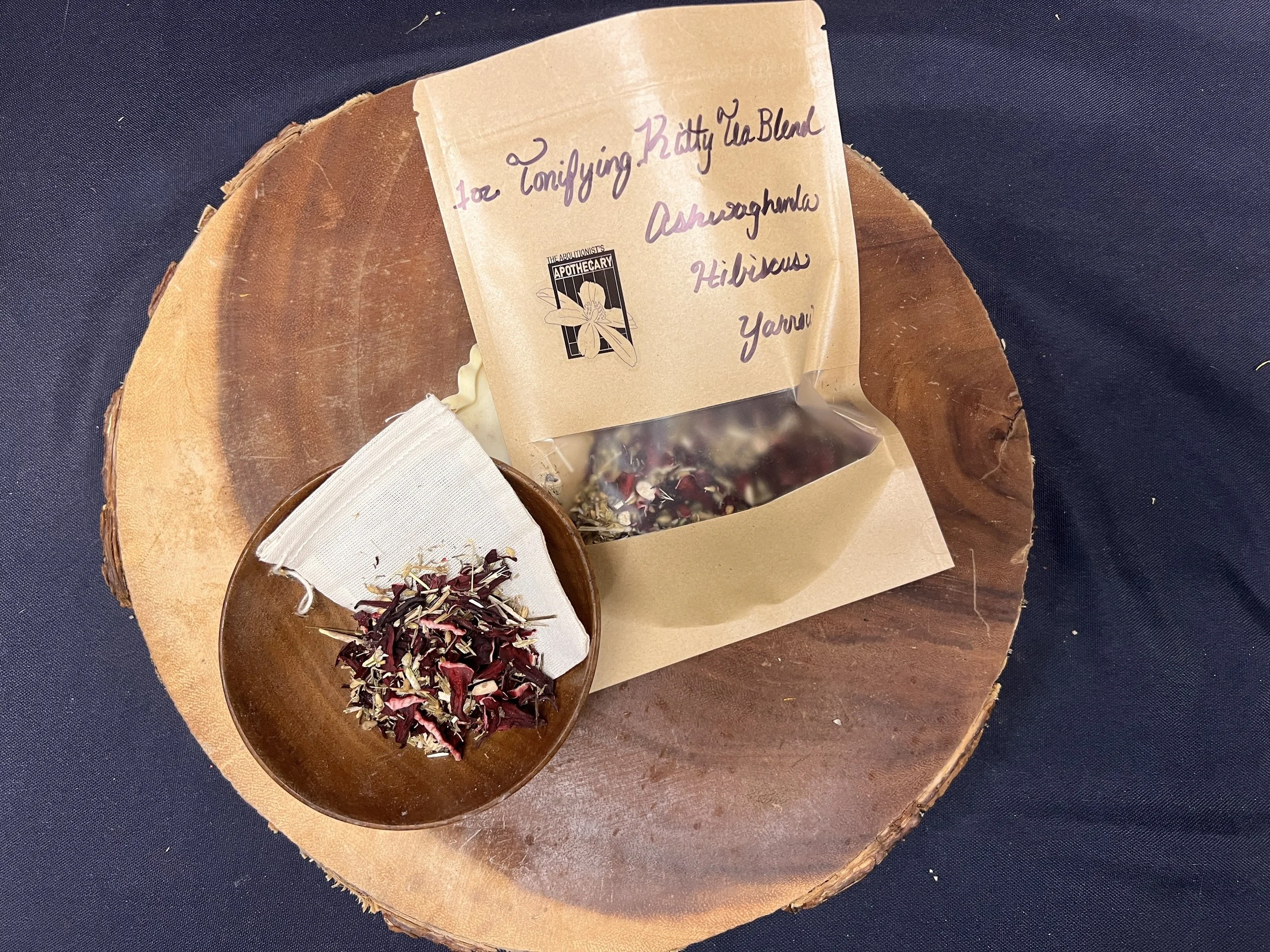 A sweet blend of Yarrow, Ashwagandha, & Hibiscus, good anytime of day or month, but especially potent around the time of your cycle. We recommend 1 tablespoon of dried herbs per 8 oz of water, steeped for 5–10 minutes, adding honey or agave to taste. Return plants to earth by composting or adding to the garden bed when finished.